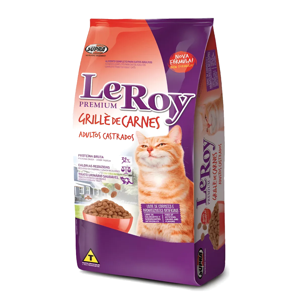 Dale a tu gato castrado el mejor alimento con LeRoy Grillé de Carnes. Este alimento seco está formulado especialmente para gatos adultos, proporcionando una dieta rica en proteínas al 32% con un delicioso sabor a carne a la parrilla que estimulará su apetito y satisfacción.